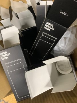 タンブラー Posted on 2026年3月24日 by hiroyukikomi Kinto社製のタンブラー、見た目は普通のタンブラーだが何か違うらしい。少し高級感がある、恐らく保冷性能等が違うのであろう。今回は16本程の小ロット 黒1色だった