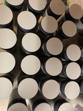樹脂製の蓋にスクリーン印刷、特に問題は無いが到着して確認したらわずかに凹んでいる蓋だった。通常の製版で刷ったらやはり滲んだので紗張りが弱めの版で製版を行い刷ったら問題なく再現ができた