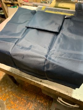 折畳むと小さくなるトートバッグ、本体と袋の両方なので工程は2倍、まぁそんなに難しくはない。さて今日は晴れ間が出ている、道路は相変わらずの雪だが今朝は除雪車が出ているので随分と綺麗になるであろう